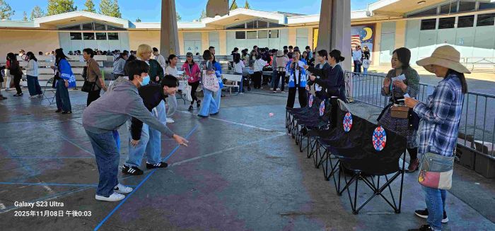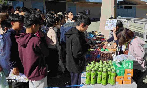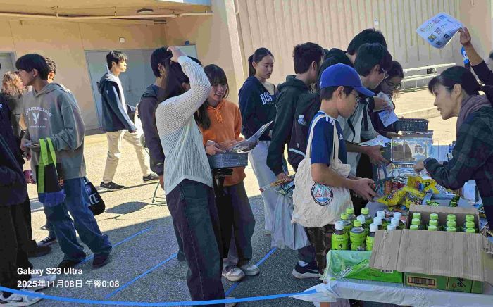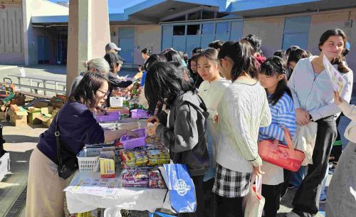 保護者会主催の駄菓子フェスが行われました。生徒は、パビリオンゲートに長い列を作って今か今かと始まりを待っていました。延長された昼休み時間を使って、ゲームや買い物を楽しんでいました。