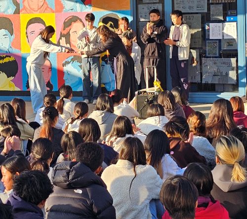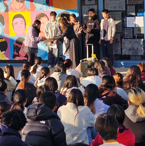 海外子女文芸作品コンクールの表彰式が全体朝会でありました。